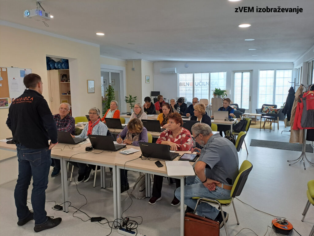 V maju in decembru so se starejši izobraževali o računalniški pismenosti na pametnem telefonu in računalniku ter spoznavali digitalni svet za svoje praktične potrebe kot: spoznavanje in uporaba e- napotnice, aplikacije zVEM, storitve e- uprave, in podobno.