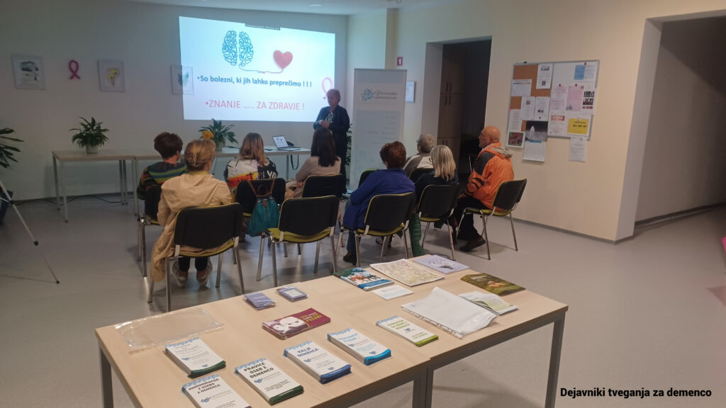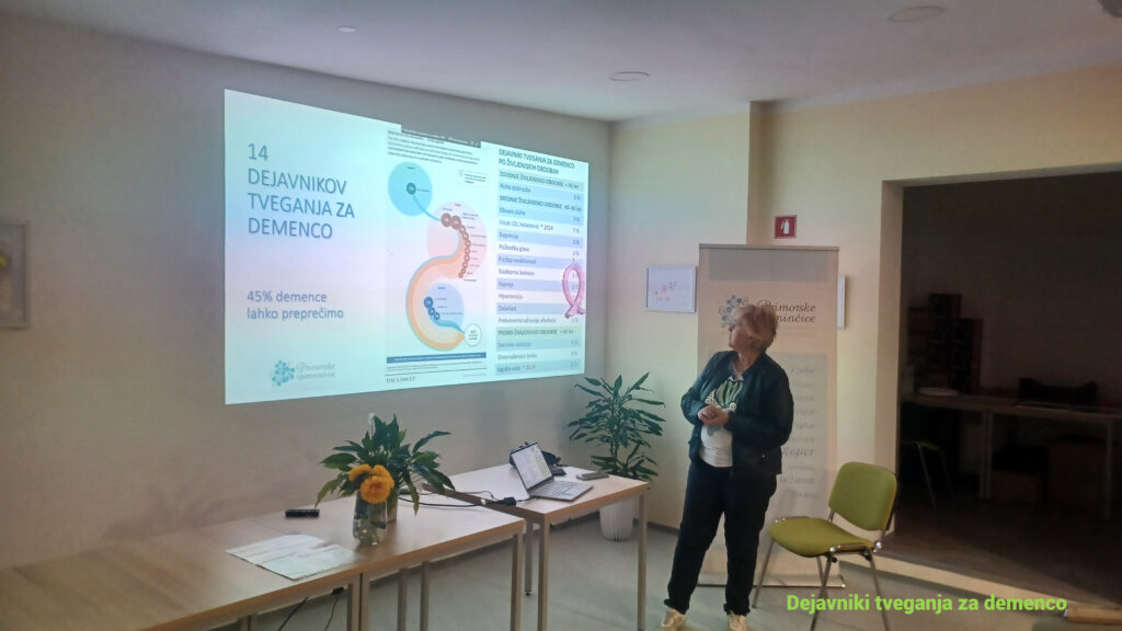 V oktobru mesecu je mag. Tatjana Cvetko, dr. med., predsednica Društva za pomoč pri demenci »Primorske spominčice«, pripravila predavanje »Dejavniki tveganja za demenco«, namenjeno svojcem in bolnikom z demenco.